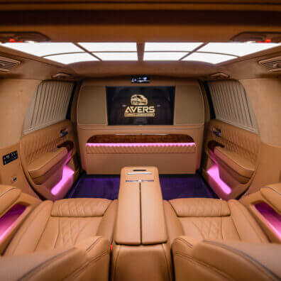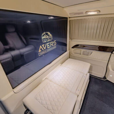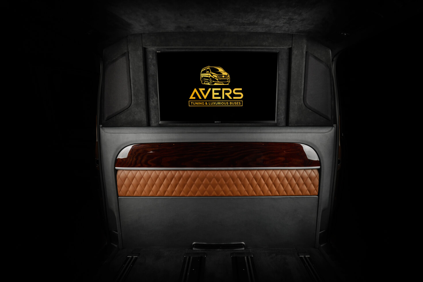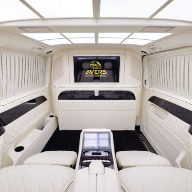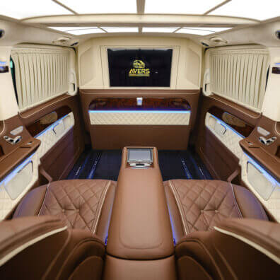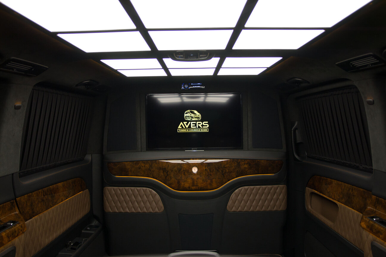 Варіант побудови системи мобільного кінотеатру залежить від того, як вона буде використовуватися, і від класу автомобіля. У седані бізнес-класу, призначеному для ділових поїздок, не просто (а іноді і неможливо) розділити перегородкою зону водія і задню VIP-зону, в якій в поїздці зазвичай знаходиться шеф (Один або зі своїми партнерами і гостями). В цьому випадку в салоні обладнали кінотеатр тільки для пасажирів на задньому сидінні, і позаду передніх сидінь розгортають систему озвучування 5.1. При цьому фронтальну акустику інсталюють в задні двері, тилову – в задню полку. Монітор, як було сказано вище, розміщують в підголівнику (Їх може бути два, в кожному підголівнику), між передніми сидіннями або на стелі. Розмір його, найчастіше, не перевищує 14 дюймів. Джерелом аудіо- відеосигналу в цьому випадку може бути головний пристрій передньої зони або спеціально встановлений в задній зоні DVD-програвач. Якщо тиловий кінотеатр працює, то в дорозі водієві і передньому пасажирові нічого не залишається, як слухати саундтрек DVD – вони не в «залі для глядачів».