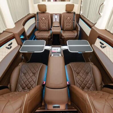Автомобільні столики можуть бути оброблені шпоною натурального дерева, карбоном та іншими сучасними матеріалами.