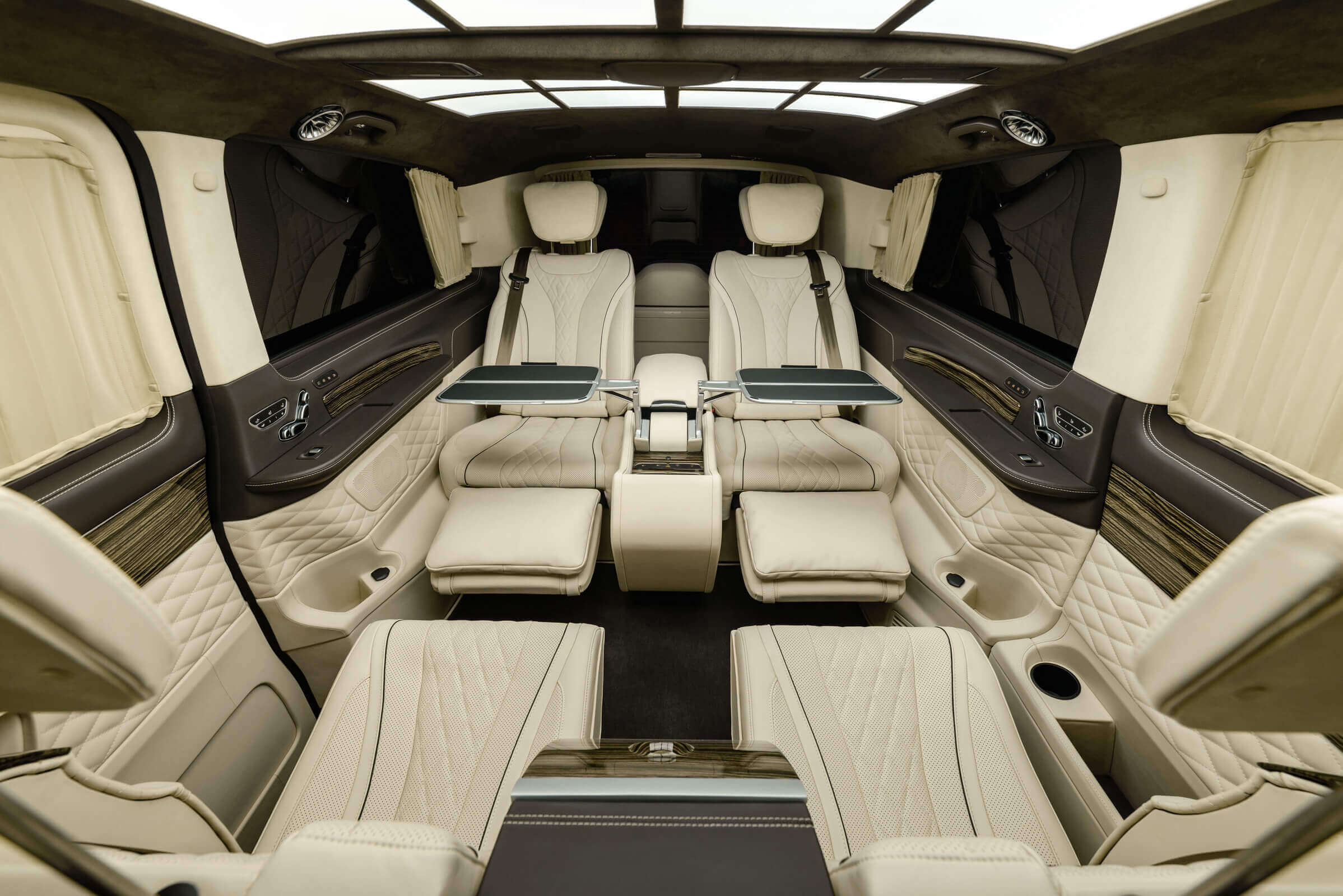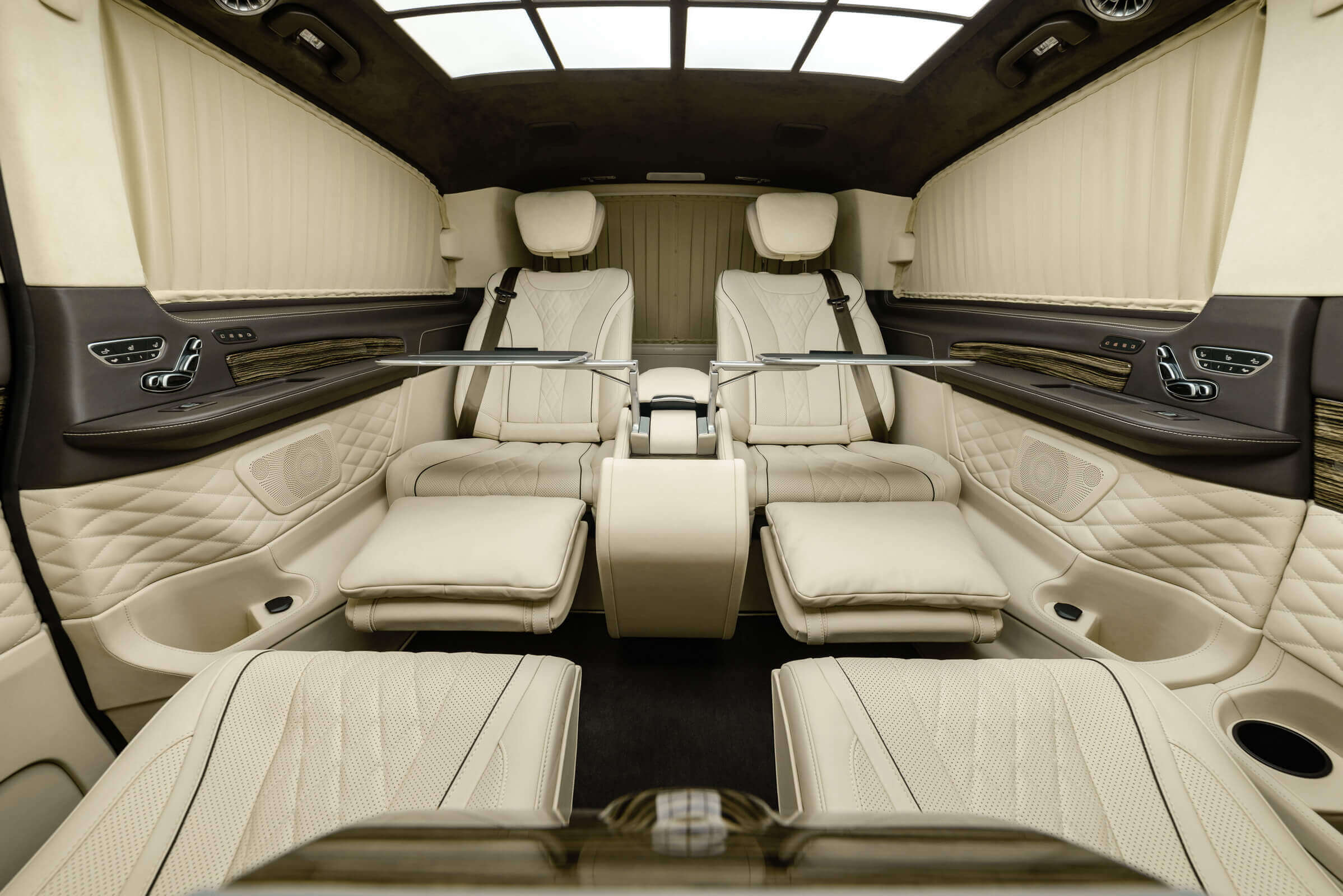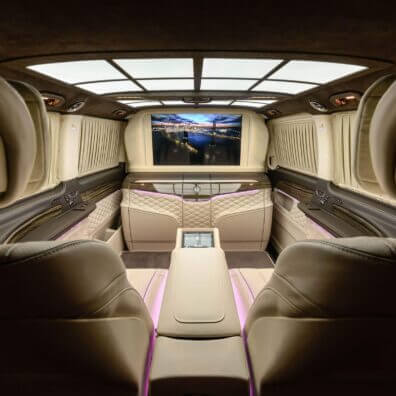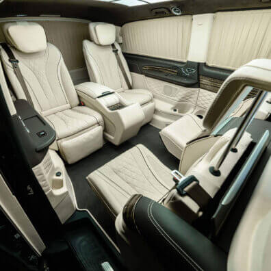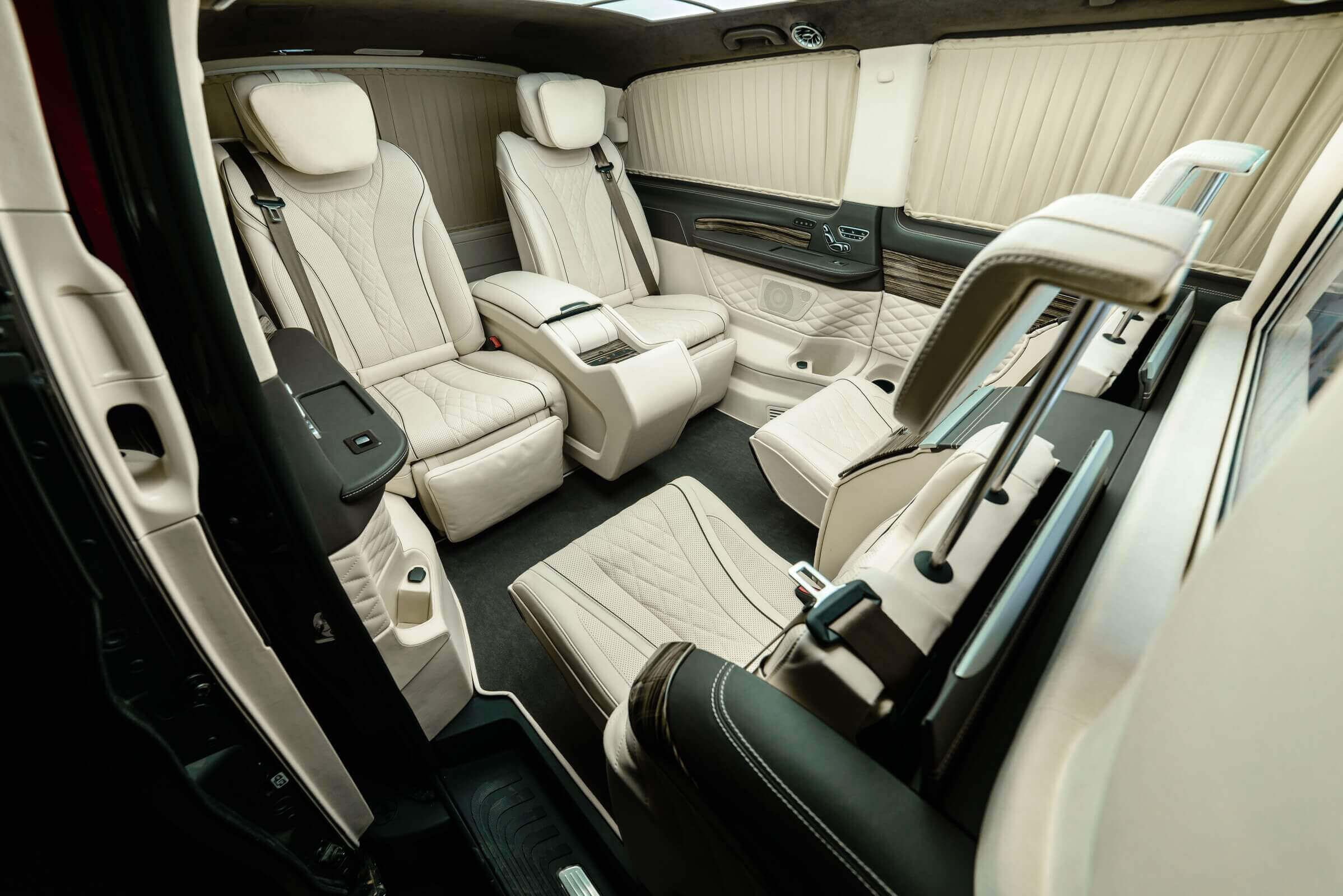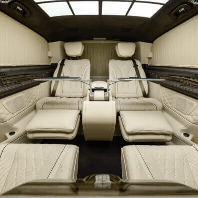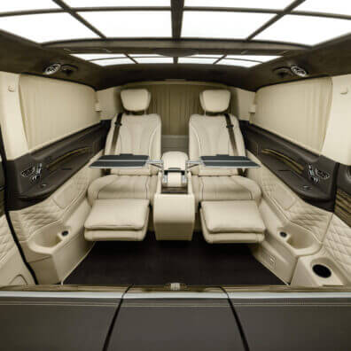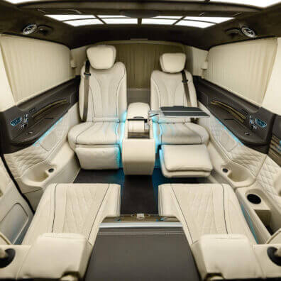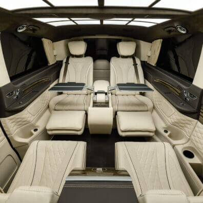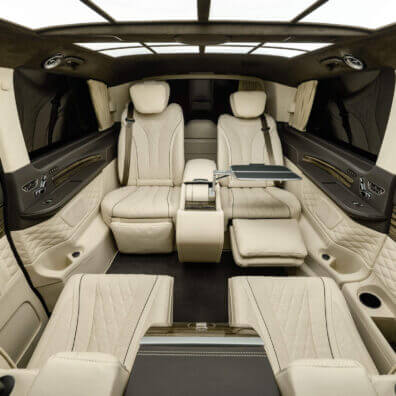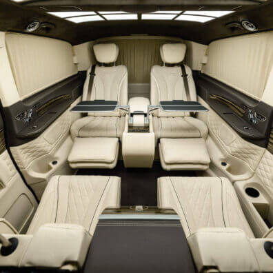 – комфортабельні крісла Mercedes-Benz W 222 Maybach з отоманками і анатомічними подушками