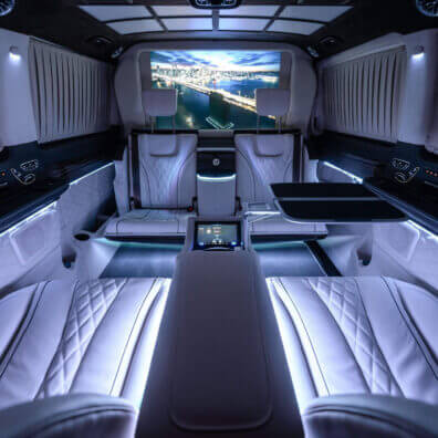 Команда досвідчених фахівців AVERS по переобладнанню мікроавтобусів провела розробку і монтаж люксового інтер’єру в найкоротші терміни.