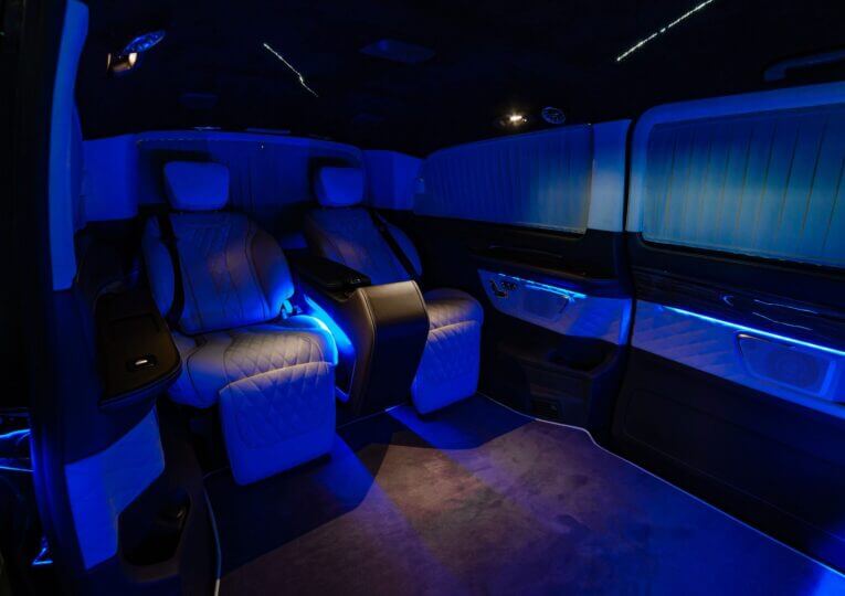 Команда досвідчених фахівців AVERS по переобладнанню мікроавтобусів провела розробку і монтаж люксового інтер’єру в найкоротші терміни.