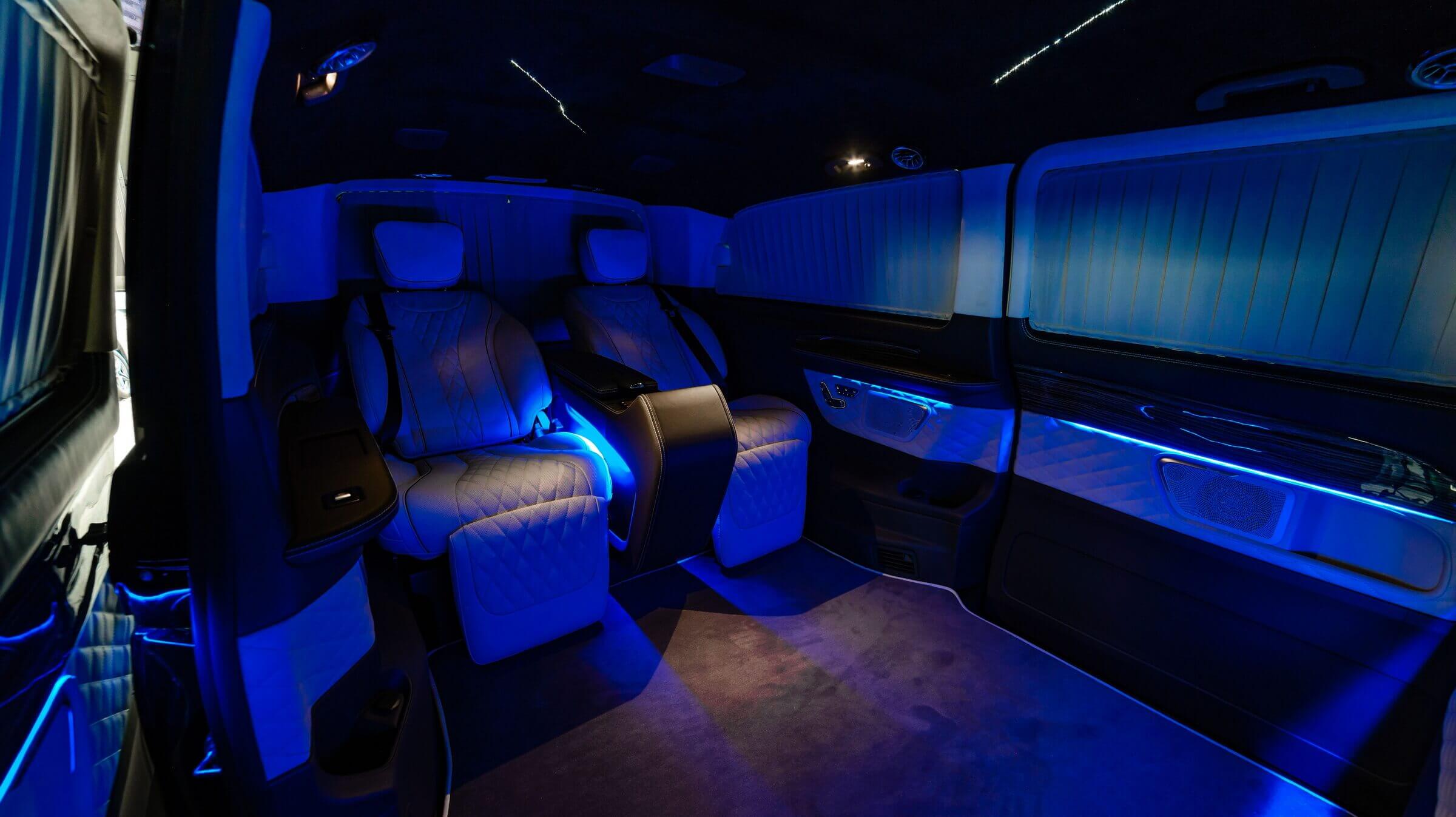 – комфортабельні крісла Mercedes-Benz S-class з отоманками і анатомічними подушками