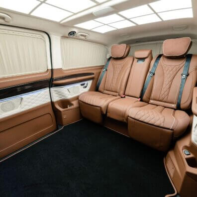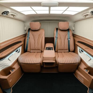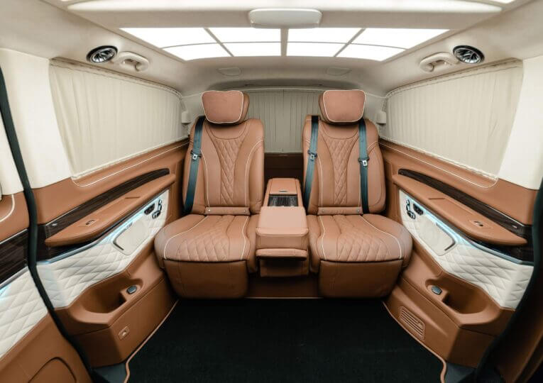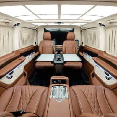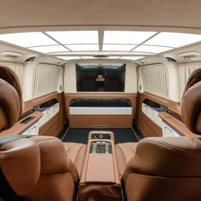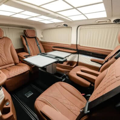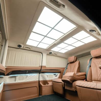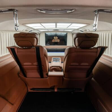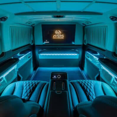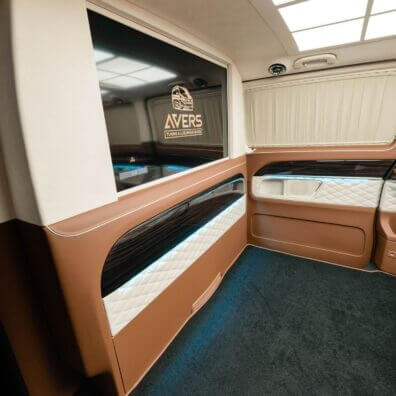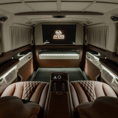 Команда опытных специалистов AVERS по переоборудованию микроавтобусов провела разработку и монтаж люксового интерьера в кратчайшие сроки.