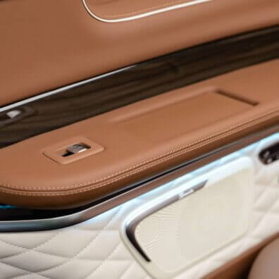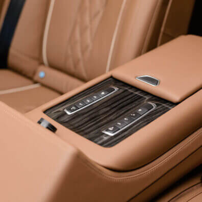 — отделка салона выполнена высококачественной — кожей и алькантарой, которая дополнена шпоном натурального дерева