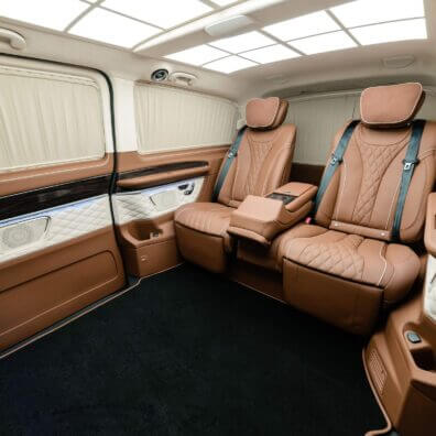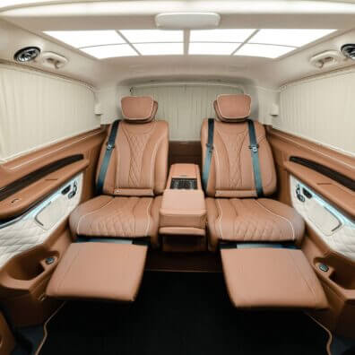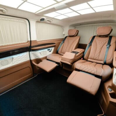 — комфортабельные кресла Mercedes-Benz S-class с оттоманками и анатомическими подушками
