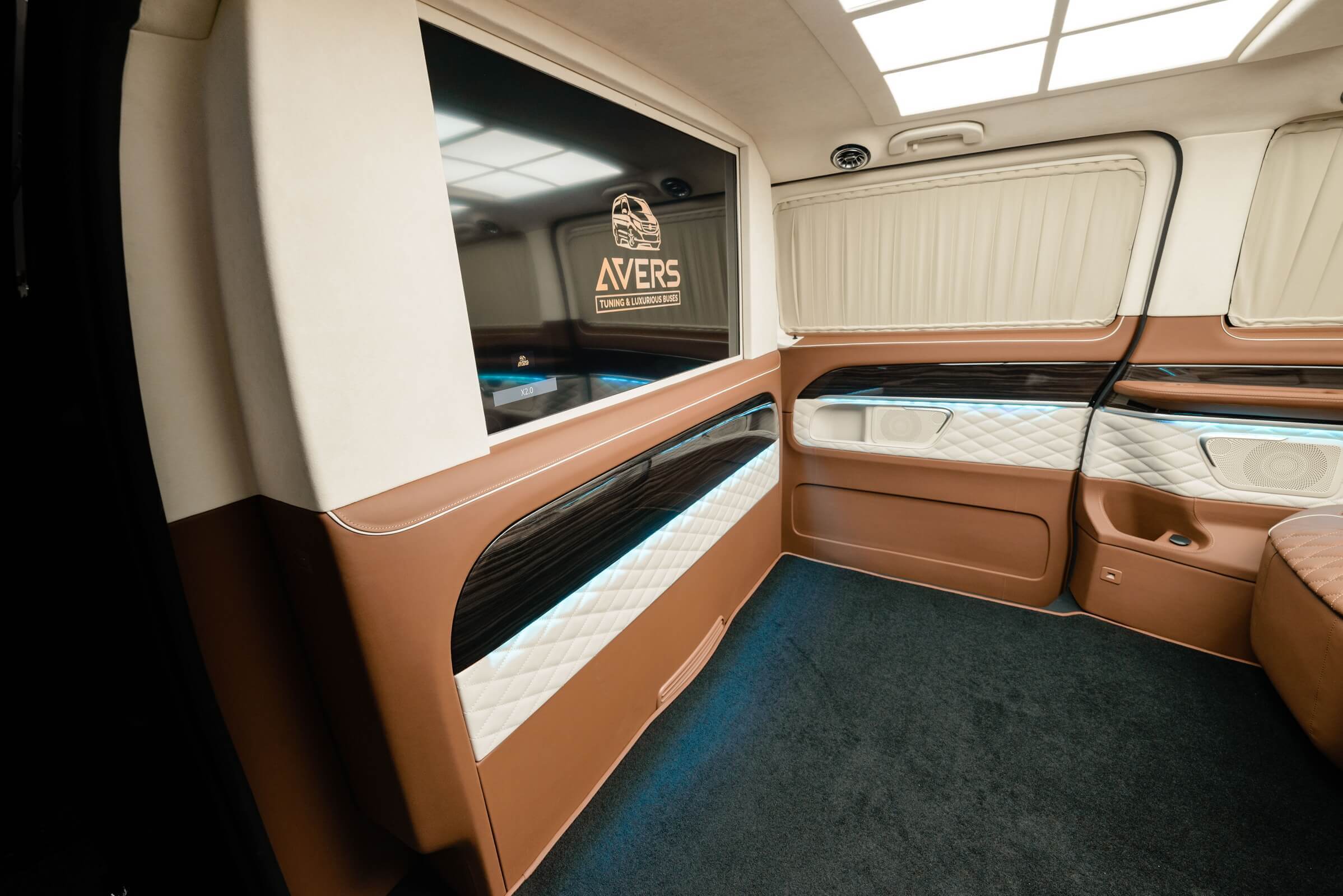 Команда опытных специалистов AVERS по переоборудованию микроавтобусов провела разработку и монтаж люксового интерьера в кратчайшие сроки.