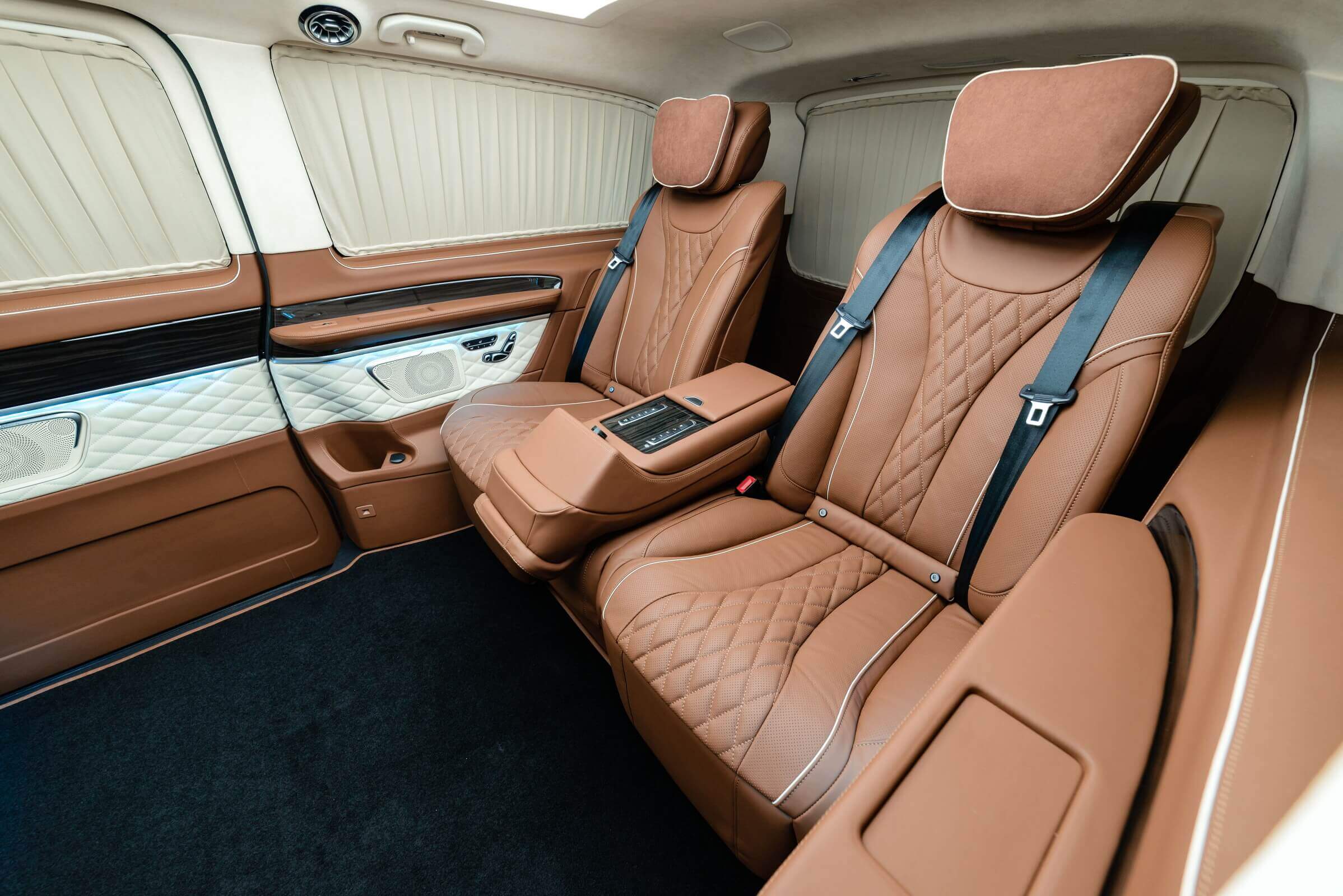 — комфортабельные кресла Mercedes-Benz S-class с оттоманками и анатомическими подушками