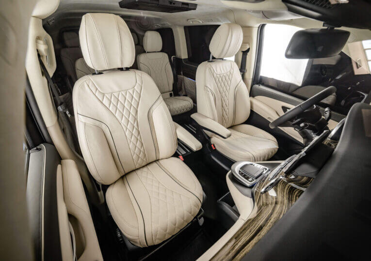 — Повна перетяжка салону виконана високоякісною білою німецькою шкірою у фірмовому стилі AMG