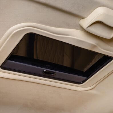 – автомобільний бар – який захований за центральним відкидним сидінням третього ряду. Після відкидання сидіння воно перетворюється в маленький столик, який безпосередньо дозволяє дістатися до бару. А замість підголівника, ми можемо вставити спеціальний утримувач для келихів;