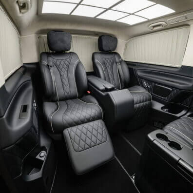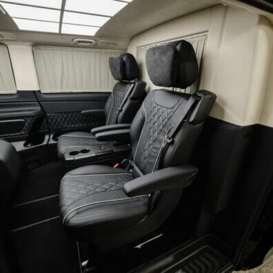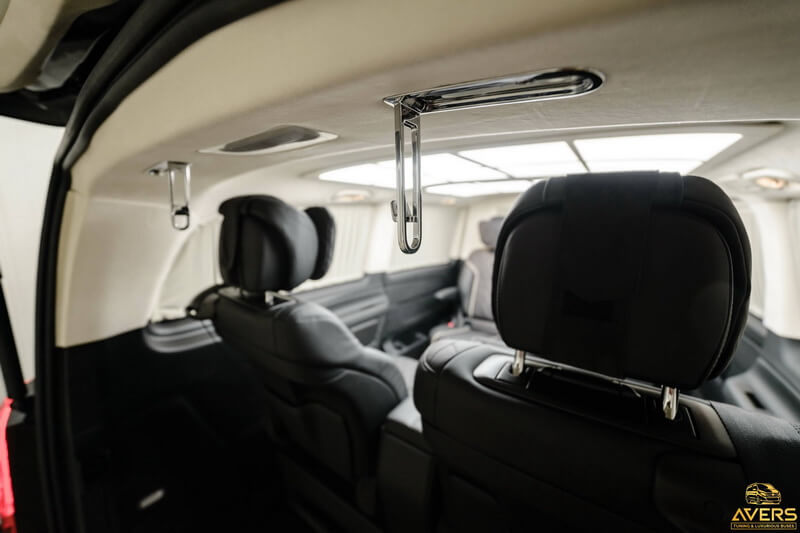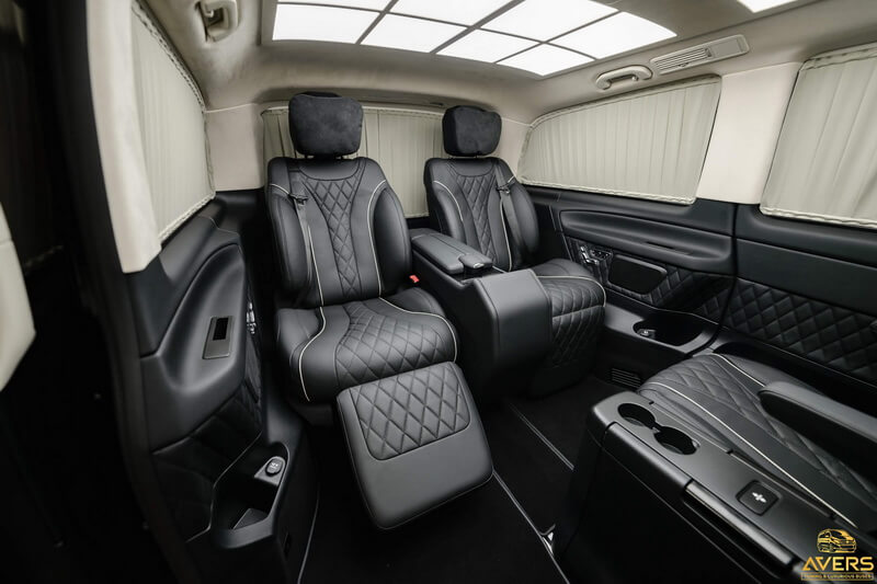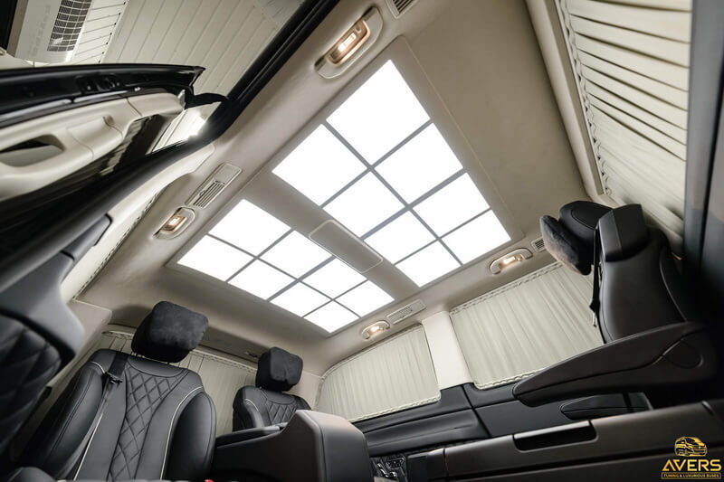 У разі негоди, пасажири можуть скористатися фірмовим парасолькою, розміщеному в багажному відділенні. Корисним доповненням став автомобільний холодильник, що знаходиться в кабіні водія. Безперебійну подачу високошвидкісного інтернету забезпечує бортовий Wi-Fi роутер. В обробці елементів салону використовувалися якісні матеріали: гладка і рельєфна натуральна шкіра, сіра алькантара, високоміцний матовий пластик.