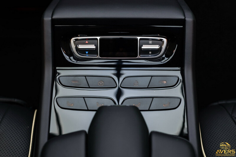 Додаткову вишуканість салону надає функціональна центральна консоль, розташована між задніми сидіннями. Виконуючи роль підлокітника вона забезпечена масою корисних опцій, в числі яких: розетка на 220 / 12В, ніша для речей. Тут так само розміщені кнопки управління освітленням, відмиканням / замиканням дверей, клімат-контролем і отоманками.