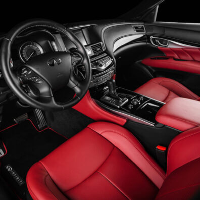 Тюнінг Infiniti М37, який приїхав в Аверс-Центр, складався з повною перетяжки салону автомобіля.
