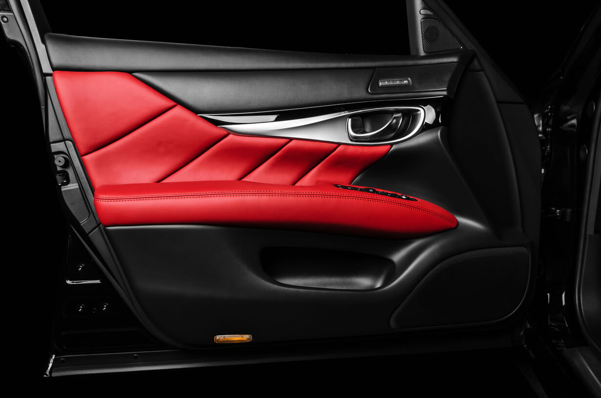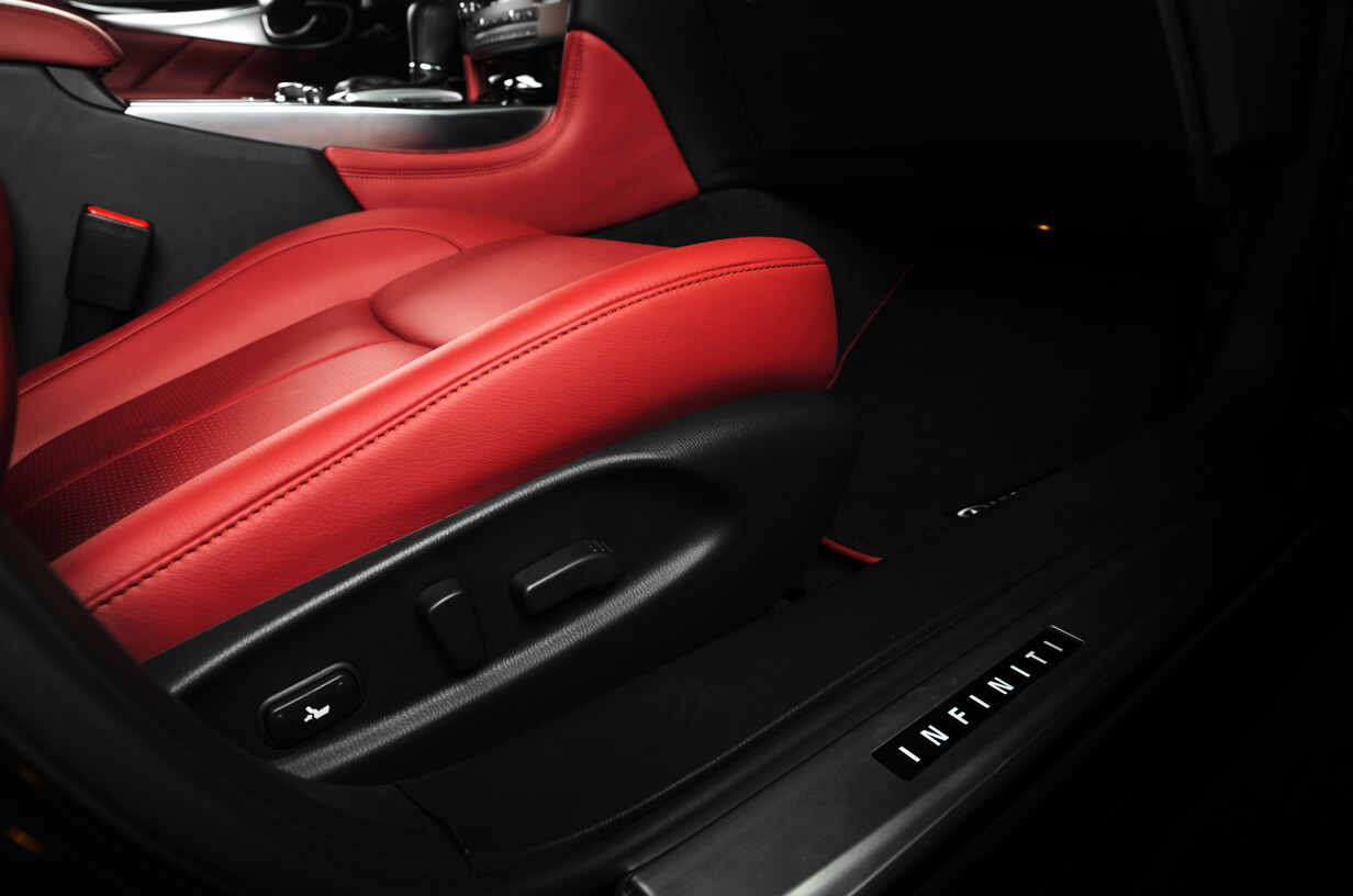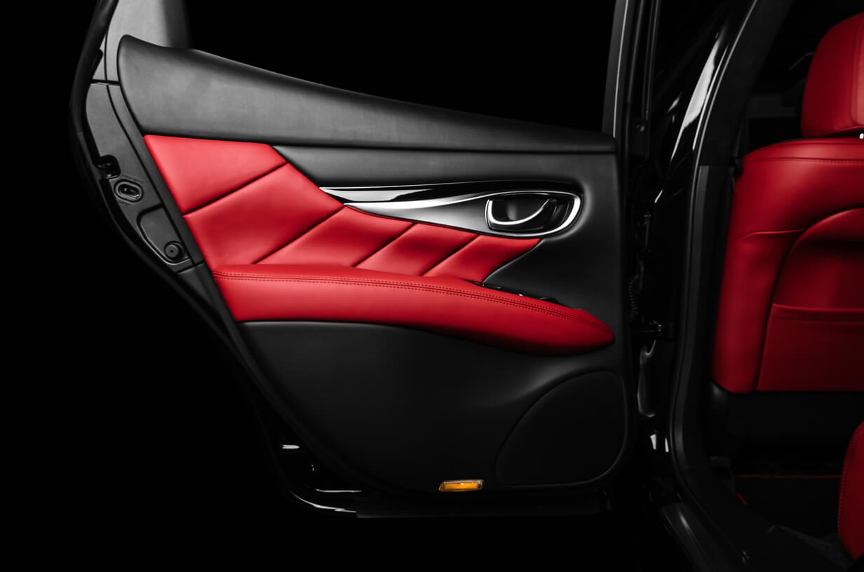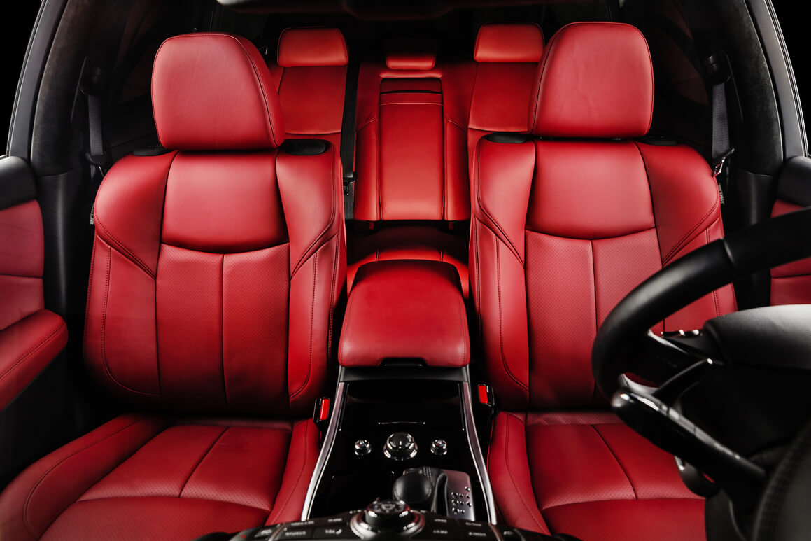 Всі сидіння в автомобілі виконали з червоної шкіри. Центральні вставки на всіх сидіннях виконали з перфорацією, для більшого комфорту. Підлокітник між переднім рядом сидінь, а так же центральні вставки в усіх картах дверей, перешили з використанням все тієї ж червоної шкіри.