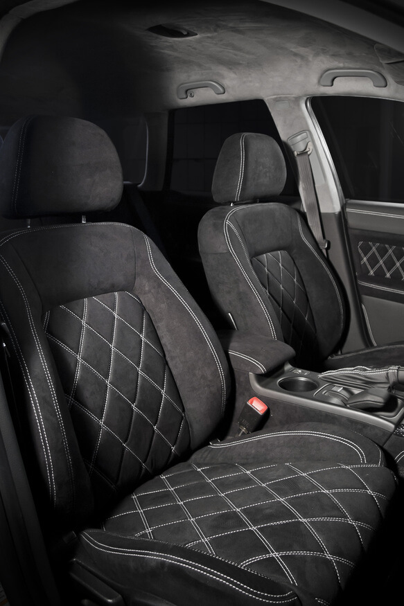 – Перетяжка салону шкірою і алькантарою;