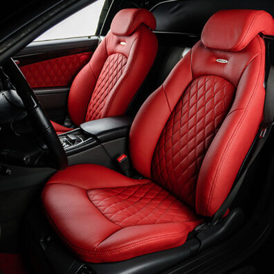 При перетяжке салона использовалась исключительно высококачественная кожа красного и черного цвета.