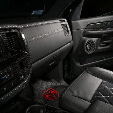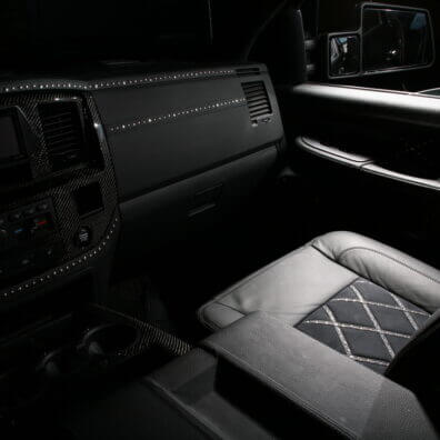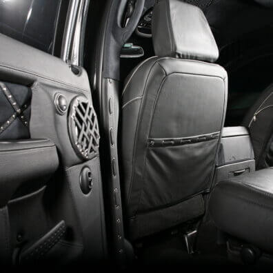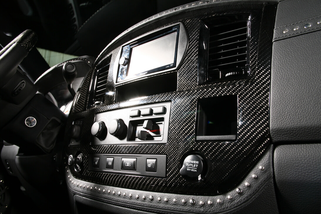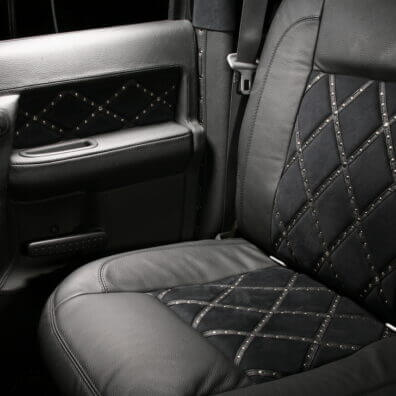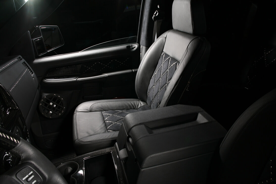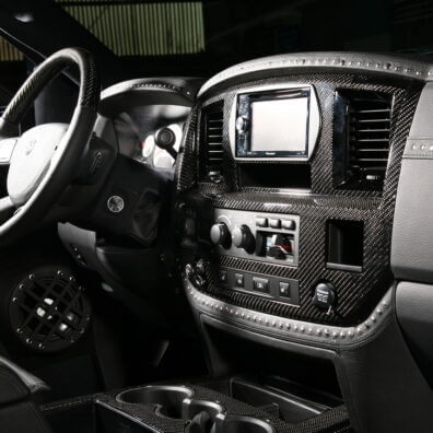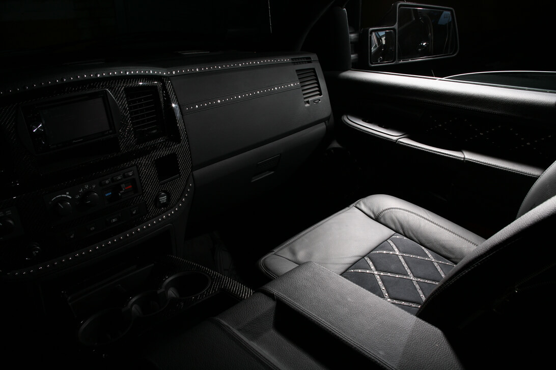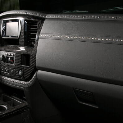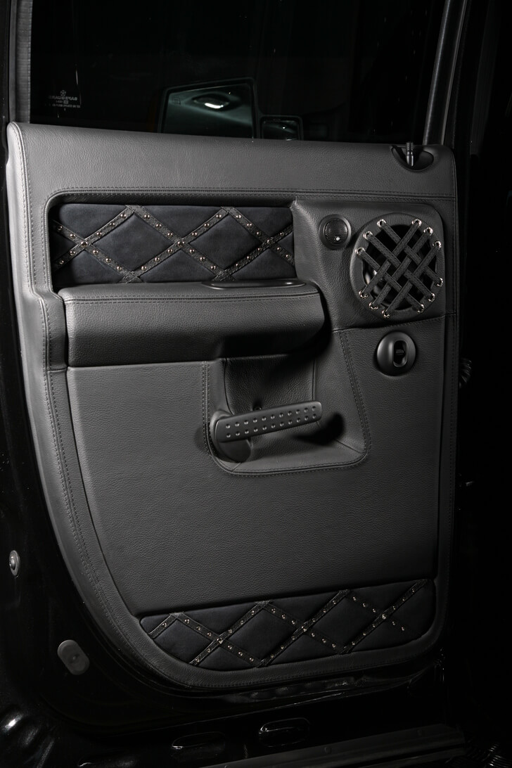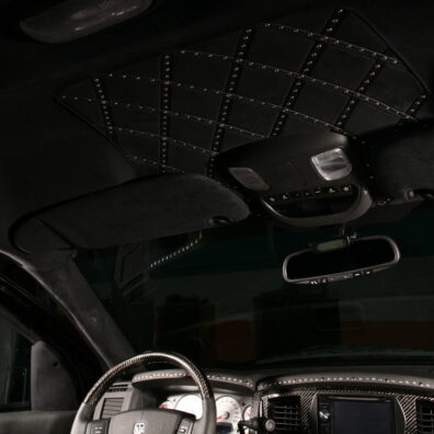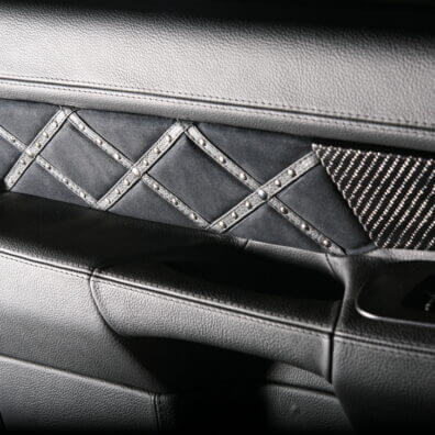 Специалисты «Аверс-центра» выполнили полную шумоизоляцию салона автомобиля, установили ксеноновый свет, видеокамеру заднего обзора, охранную систему Tecnoblock и иммобилайзер Skybrake. Для нового интерьера салона выбрали стильное сочетание черных алькантары и кожи с использованием «байкерских» мотивов – заклепки, кнопки и молнии. Изготовили и установили комплект карбона. Автомобиль оснастили качественной аудиосистемой.