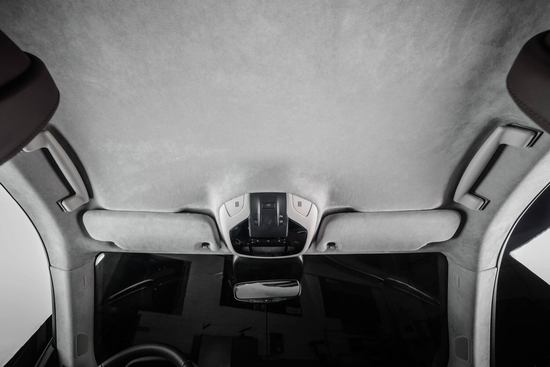 Потолок, все стойки и козырьки — перетянули светлой алькантарой, которая идеально дополняет салон и визуально делает его больше. Также алькантара очень приятна на ощупь и имеет премиальный внешний вид.