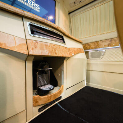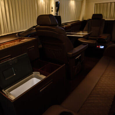 Мобильный офис давно вышел за пределы своего функционального понятия. Современные услуги тюнинга салона предоставляют возможность укомплектовать его всем необходимым. Находясь в дороге не становиться проблемой получить или отправить важные документы, пользоваться беспроводным интернетом. Чтобы всегда быть в бодром состоянии нужно всего лишь включить кофеварку и насладиться ароматным вкусом любимого напитка. А более искушенные пассажиры могут немного отвлечься от дел и сыграть в Playstation.