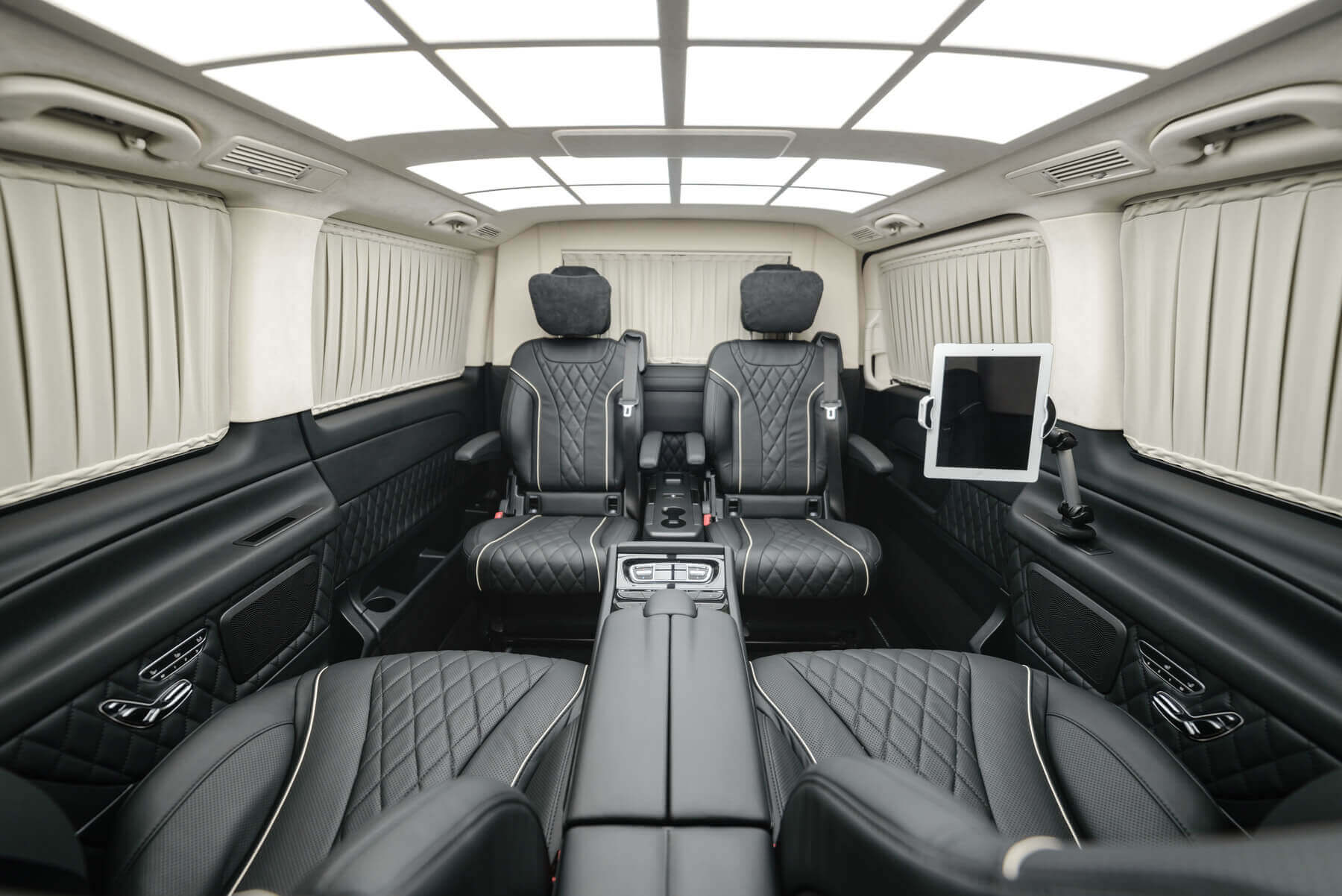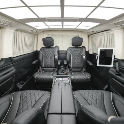Это не грандиозные выдумки каких-то фантазеров, а реальные возможности для мобильных офисов на колесах. В нашей компании такие услуги давно стали популярными среди успешных бизнесменов, которые делают из салона своего представительского авто люксовое пространство. Важно уточнить то, что такой салон является полностью конфиденциальным за счет установки перегородки с водительским отсеком.